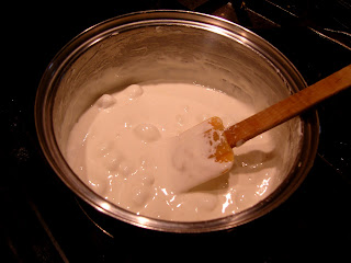 First I melted 3tbs of butter along with one 10oz bag of marshmallows